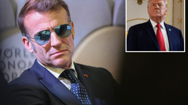 French President Emmanuel Macron appeared at the World Economic Forum in Davos, Switzerland, donning dark aviator glasses, which he attributed to a burst eye...