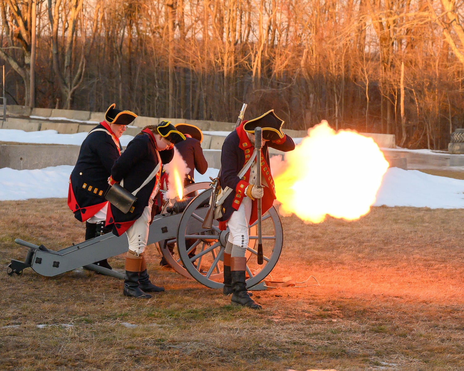 The Blandford Historical Society marked a significant moment in American history with a cannon salute and bonfire celebration on January 11, 2024. The event took place at the Blandford Fairgrounds to honor the arrival of Henry Knox‘s artillery train in Blandford during the American Revolutionary War. This expedition was a pivotal moment as it involved transporting 60 tons of captured cannons from Fort Ticonderoga in New York to the Continental Army located outside of Boston.